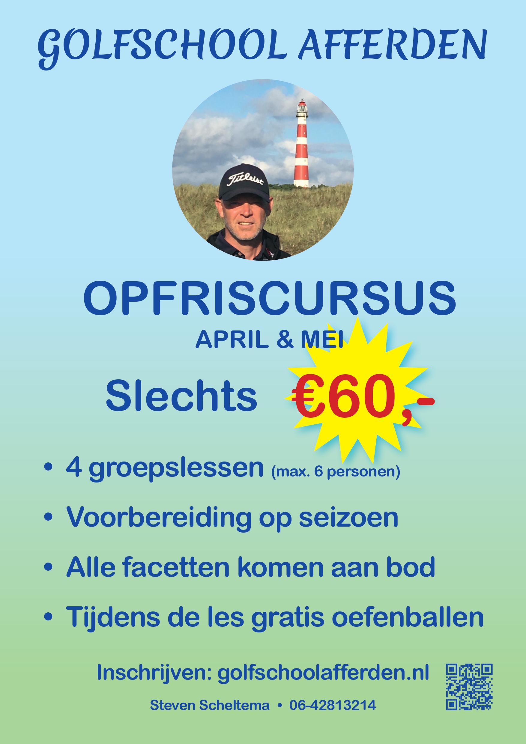Je kunt in de periode April – Mei meedoen aan 4 groepslessen met als thema driver -ijzers- chippen- bunkerles en putten. Je kunt zelf de opties kiezen, dus je kunt ook twee keer deelnemen aan een driver les en twee keer aan een bunkerles of een par drie les. Er zijn heel veel lesmogelijkheden deze kun je terugvinden onder het kopje les boeken. Groepen bestaan uit maximaal zes personen. Lessen gaan ook door bij minder deelnemers. Als er veel animo is worden er lessen bijgezet op de site. Als je zelf een groepje wil vormen dan s.v.p. contact opnemen. Je kunt je rechtstreeks inschrijven hier door het inboeken van een les of anders even een appje of mailtje sturen naar Steven dan wordt de inschrijving geregeld.